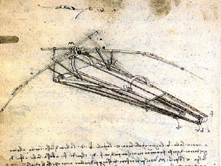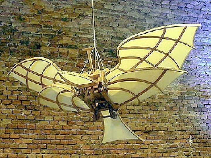 La imaginación de Da Vinci era impresionante en ideas relacionadas con máquinas voladoras, incluyendo varios planeadores equipados con alas abatibles. Manivelas, poleas, cuerdas y ruedas dentadas conformaron una fiel réplica de las alas y las articulaciones de los murciélagos. No vuelan por la desproporción entre el peso y la potencia del piloto. Usadas para planear, preceden al ala delta. Su máquina, como la de Ícaro, era incapaz de mantenerse mucho tiempo en el aire.