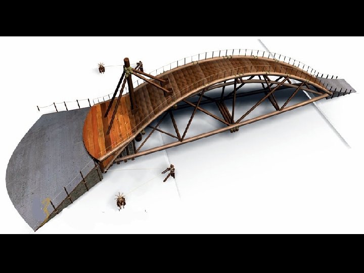 Aunque era un gran defensor de la paz y de las retiradas rápidas, el pintor desarrolló no pocas armas de guerra. Pensó en hacer un puente giratorio. Estaban unidos a un sistema enrollado en una base de cuerdas y poleas que permitían a un ejército recogerlo y marcharse rápidamente.