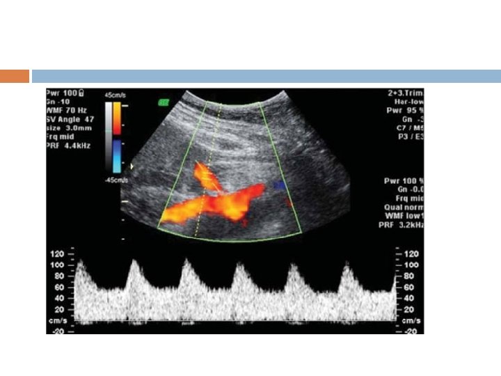 Interpretation of Uterine artery • Combined PI >2. 5 or >1. 5 Mom • BP , PAPP A , PGF • Prophylactic asprin • Follow up doppler at 22 -24 weeks • Follow up doppler & Growth scan at 28 -30 weeks UA PI – INCREASE – impaired trophoblastic invasion of maternal spiral arterioles & their conversion to wide non muscular channels depend on Maternal Vasomotor tone