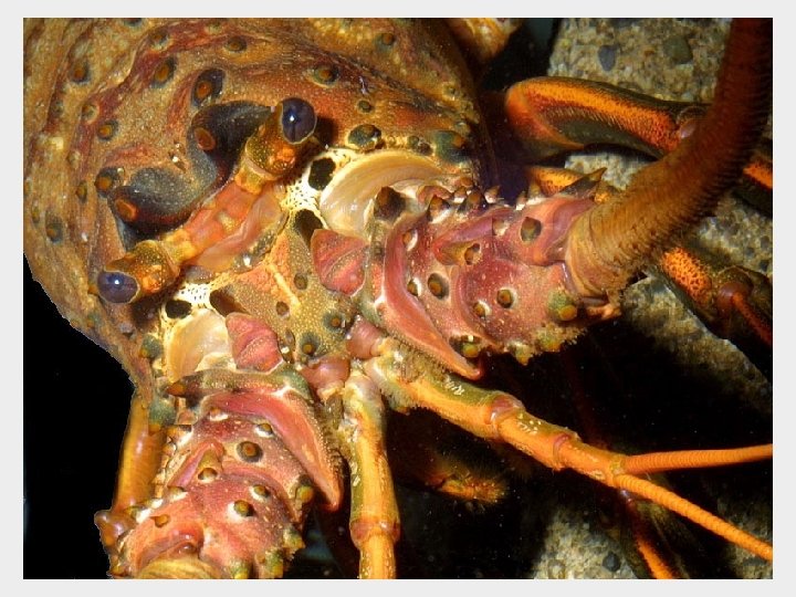 Class Malacostraca § Order Decapoda: Infraorder Palinura « Spiny lobsters § § § Similar to Caridea Common in S. California Lack powerful cheliped « Protection? « Group molting