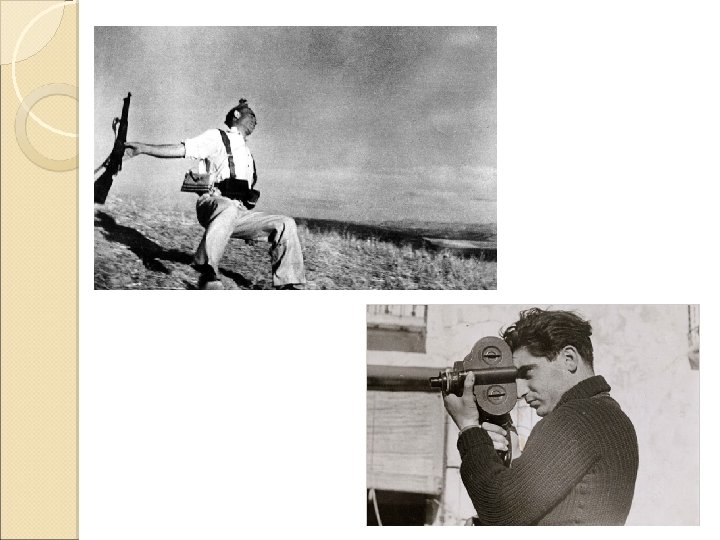 Exemplo: Robert Capa ( Budapeste, 22 de outubro de 1913 – Thai Binh, 25 de maio de 1954). Um dos mais célebres fotógrafos de guerra, Capa cobriu os mais importantes conflitos da primeira metade do século XX: a Guerra Civil Espanhola, a Segunda Guerra Sino-Japonesa, a Segunda Guerra Mundial na Europa (em Londres, na Itália, a Batalha da Normandia em Omaha Beach e a liberação de Paris), no Norte da África a Guerra árabeisraelense de 1948 e a Primeira Guerra da Indochina. (http: //pt. wikipedia. org/wiki/Robert_Capa)