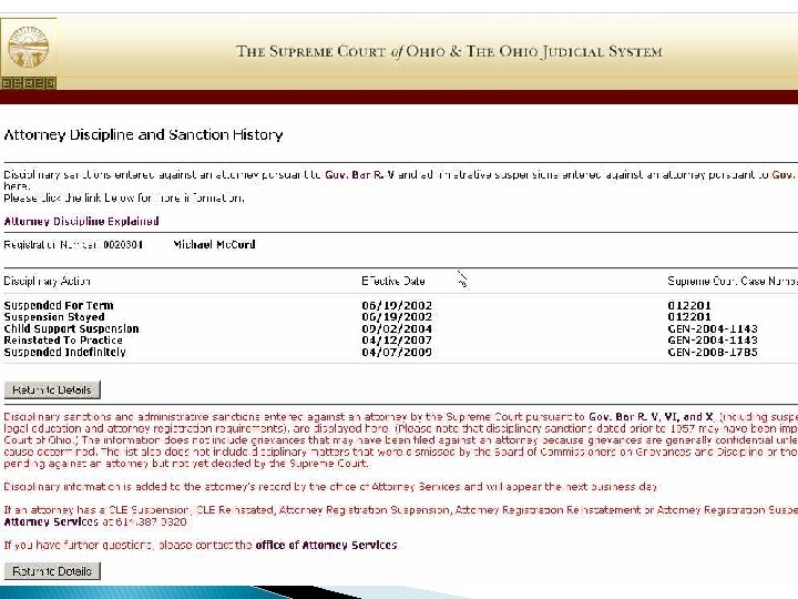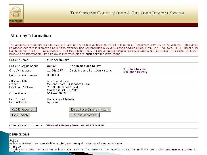Attorney Licenses �A Compilation of State Lawyer Licensing Databases � Ohio Supreme Court cases -disciplinary cases, 1993 - � ABA - Directory of Lawyer Disciplinary Agencies