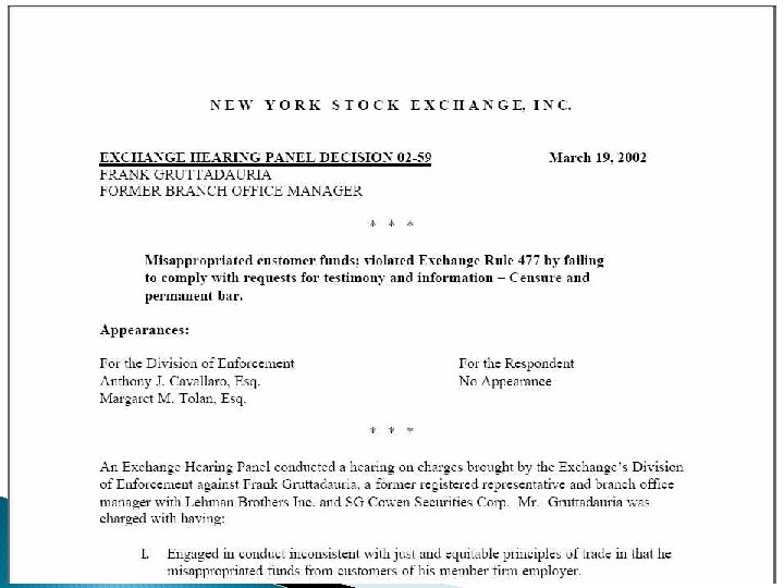 Stock Brokers � National Futures Association's Background Affiliation Status Information Center (BASIC). � NYSE Disciplinary Actions – Gruttadauria � Certified Financial Planner Look-up