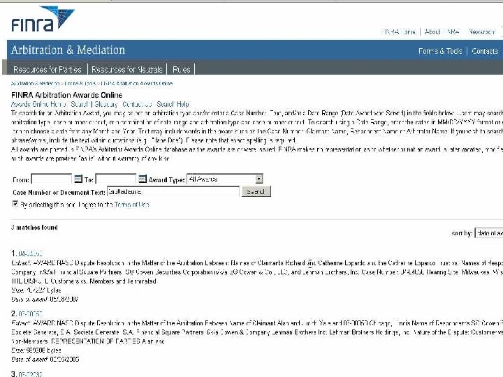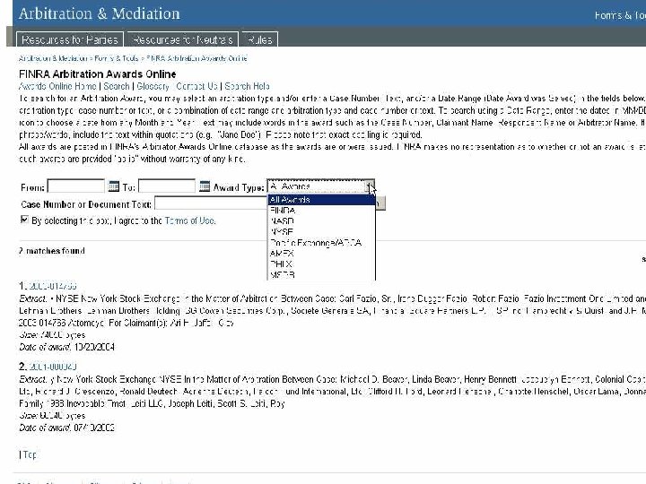 Stock Brokers & Advisors � Zimmerman’s BD � News � FINRA Research Guide – broker's Form articles, google Broker Check � NYSE Arbitration Decisions – 2000� FINRA Arbitration Awards Online 1988� SEC - Check Out Brokers and Advisors (article)