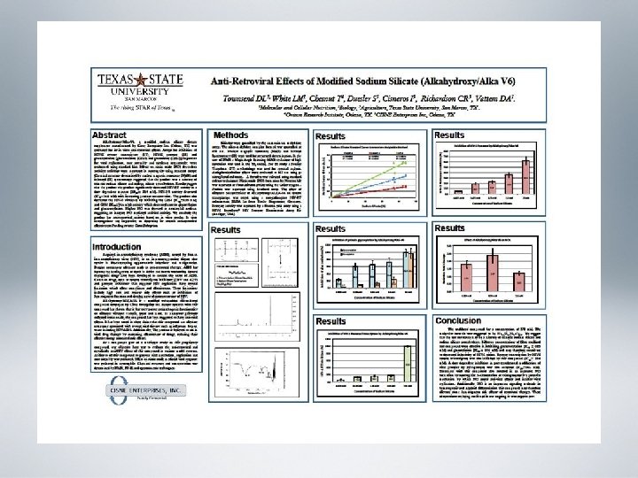 ANTI-HIV EFFECTS OF ALKA HYDROXY – ALKA VITA - ALKA V 6 Dr. C. Reed Richardson & Dr. Dhiraj Vattem TEXAS STATE UNIVERSITY San Marcos, TX • OBJECTIVE: To determine the following effects of Alkahydroxy in cell cultures and other in vitro systems • ANTI-RETROVIRAL • Note: Alkahydroxy – Alka Vita – Alka v 6 names used for different type of testing. Product name: Modified Liquid Silicate • New Marketing name: