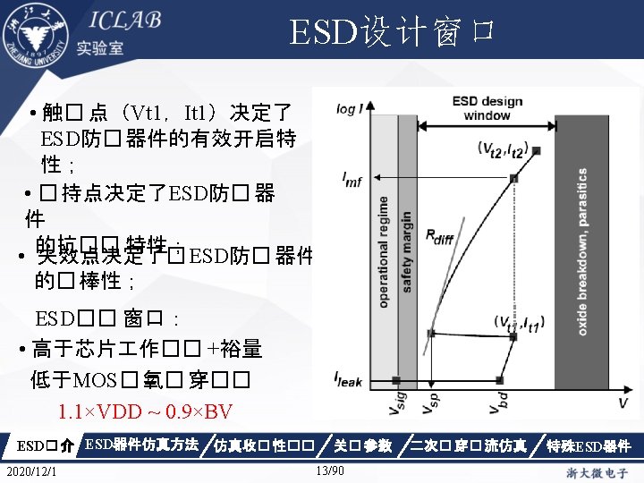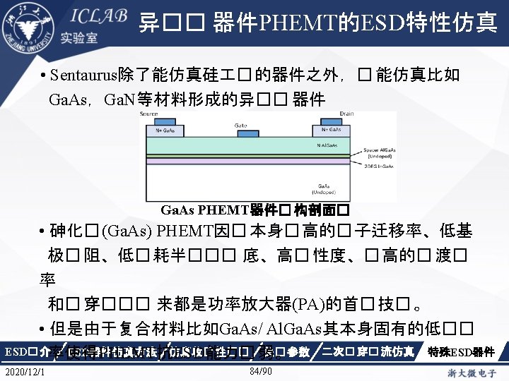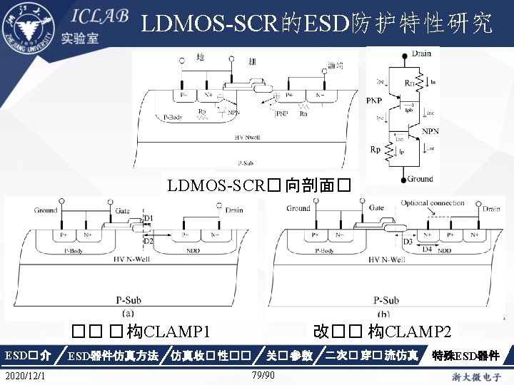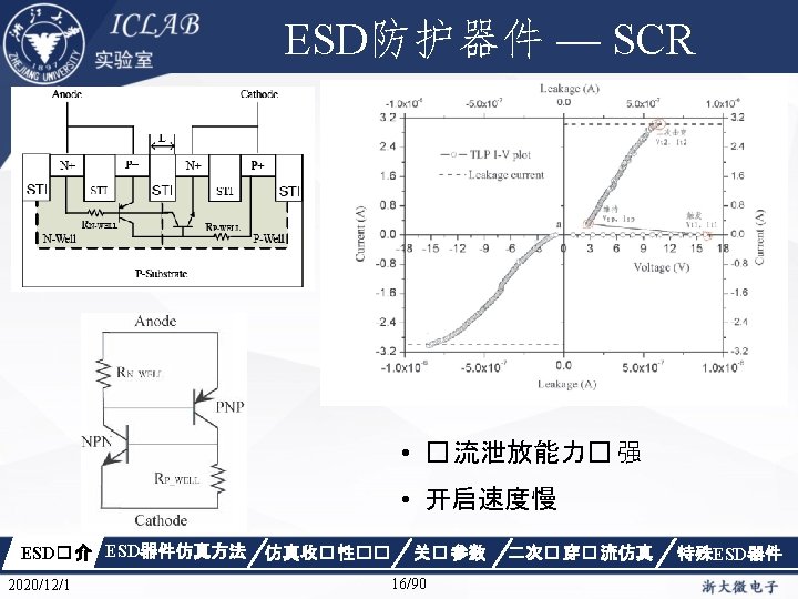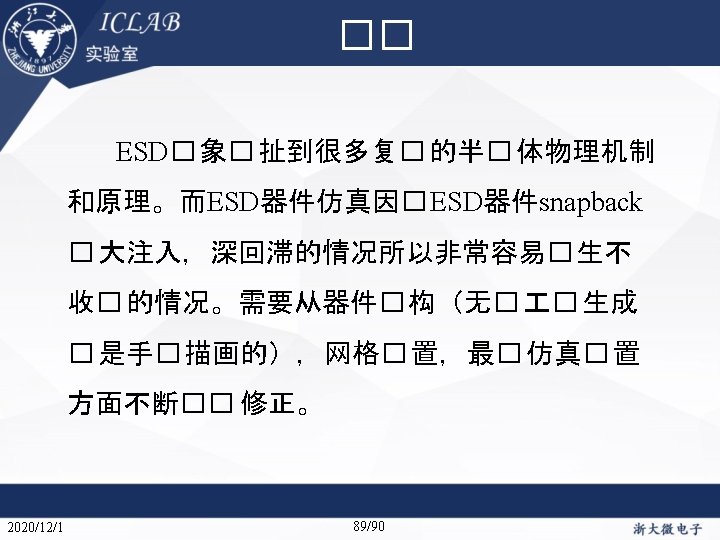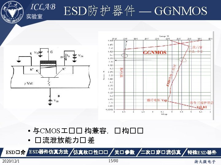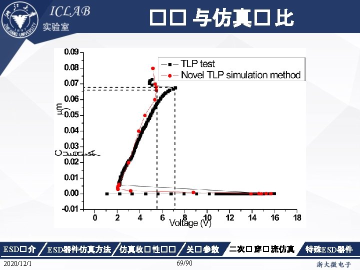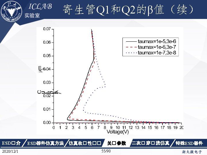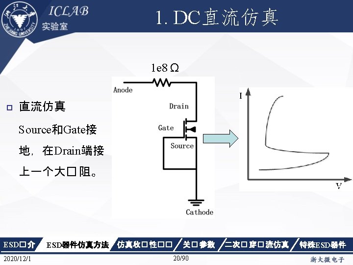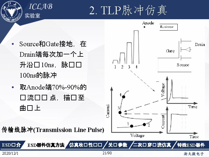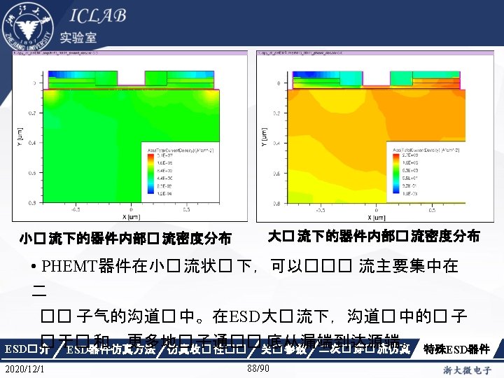 Drain Current [A] 不同漏极偏� 下p. HEMT器件Ig/Id曲 � Vds=1. 5 V Vds=0. 05 V Gate Voltage [V] ESD� 介 2020/12/1 ESD器件仿真方法 仿真收� 性�� Gate Voltage [V] 关� 参数 87/90 二次� 穿� 流仿真 特殊ESD器件