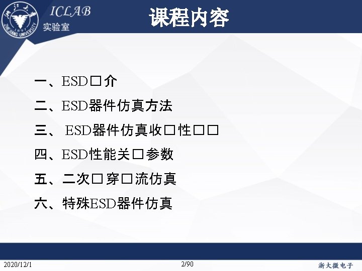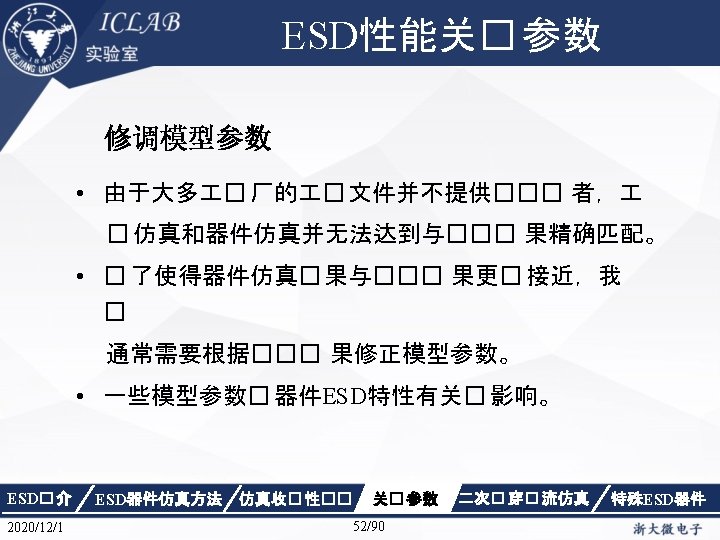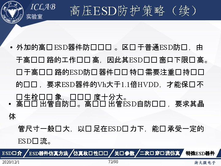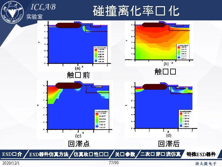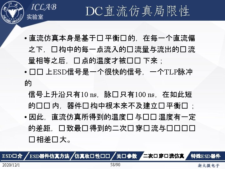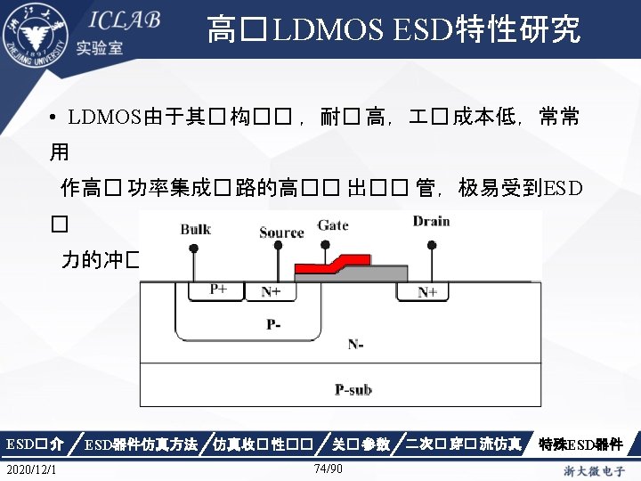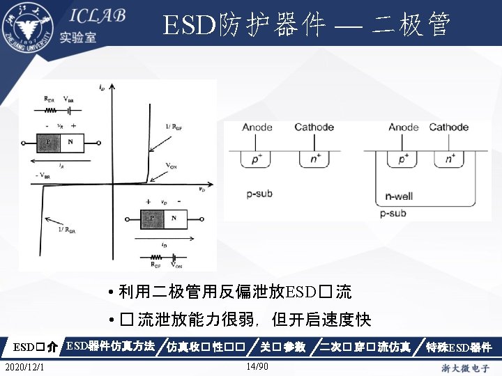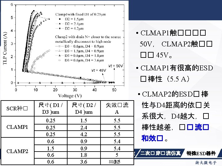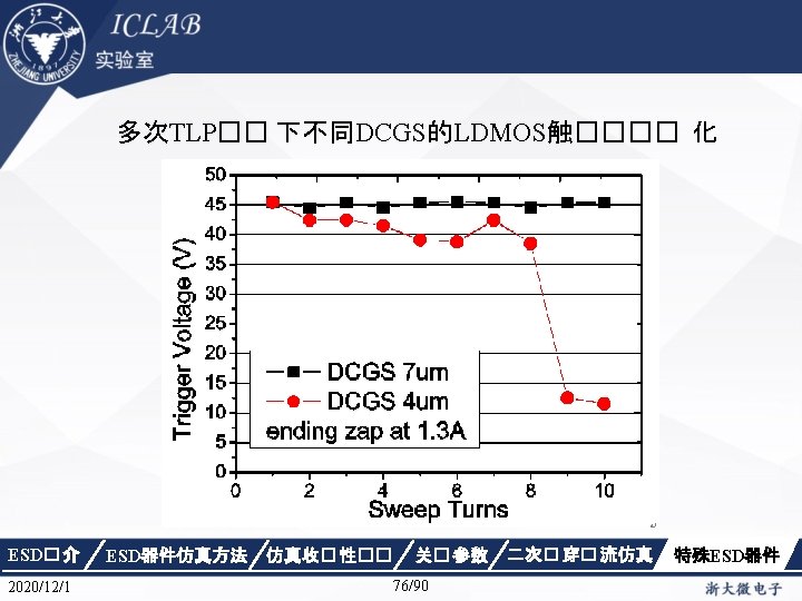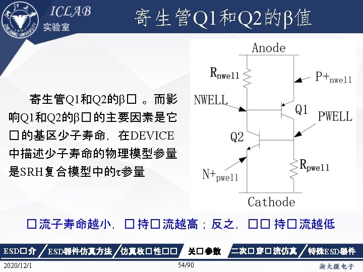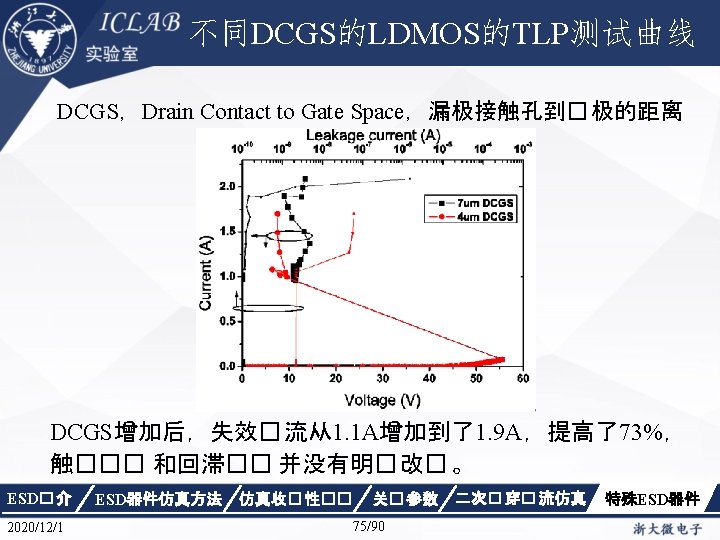 Drain Current [A] 不同漏极偏� 下p. HEMT器件Ig/Id曲 � Vds=1. 5 V Vds=0. 05 V Gate Voltage [V] ESD� 介 2020/12/1 ESD器件仿真方法 仿真收� 性�� Gate Voltage [V] 关� 参数 87/90 二次� 穿� 流仿真 特殊ESD器件