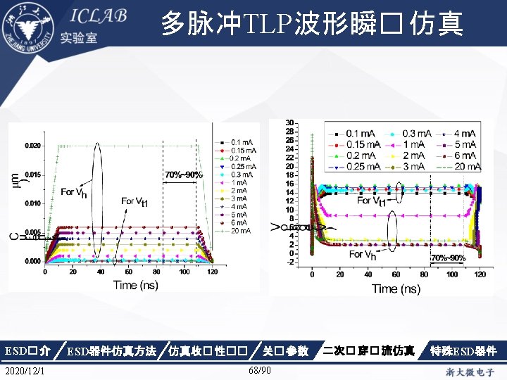Drain Current [1 e-4 A] 不同� 偏� 下p. HEMT器件的Vd/Id曲� Vgs=0. 8 V Vgs=0. 4 V Vgs=0 V Vgs=-0. 4 V Vgs=-0. 8 V Drain Voltage [V] ESD� 介 2020/12/1 ESD器件仿真方法 仿真收� 性�� 关� 参数 86/90 二次� 穿� 流仿真 特殊ESD器件