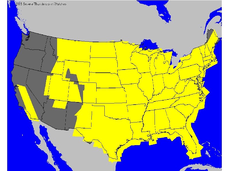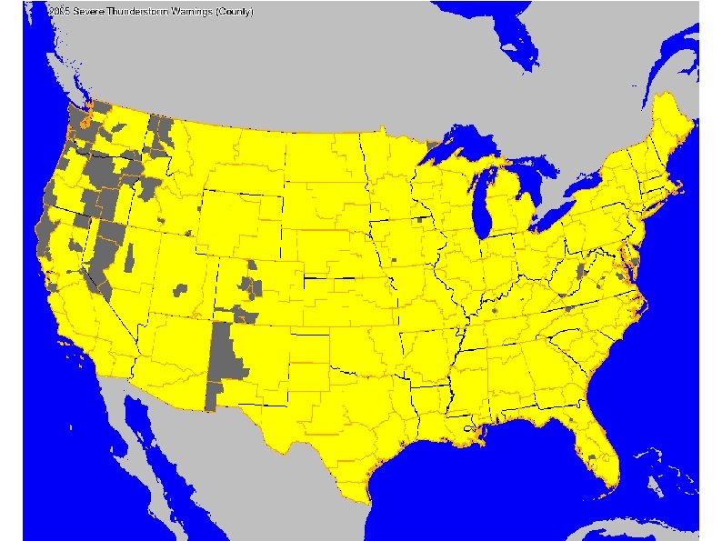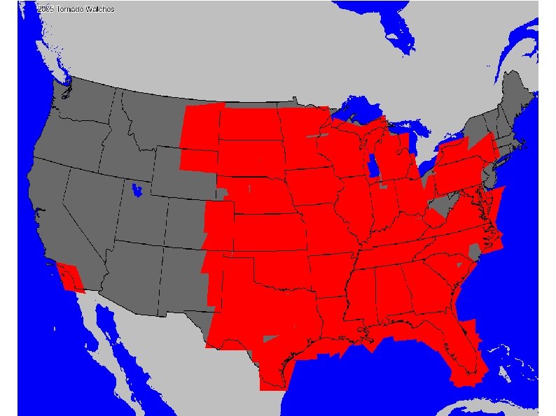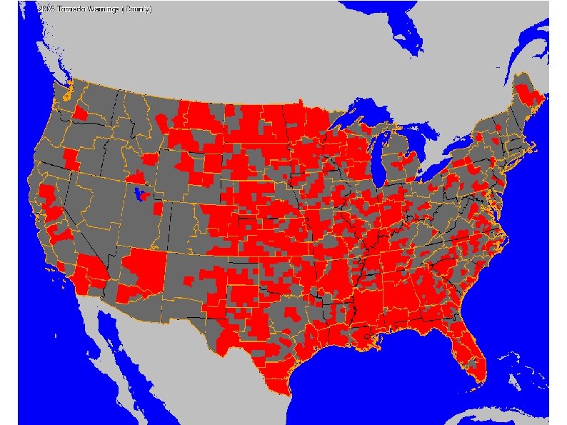 2005 Most Warned Counties ● Svr Tstorm Warn ● Tornado Warning – 67 Cherry, NE – 24 Holmes, MS – 65 Maricopa, AZ – 23 Smith, MS – 57 Pima, AZ – 21 Baldwin, AL – 54 Lincoln, NE – 21 Warren, MS – 51 Hinds, MS – 21 Rankin, MS
