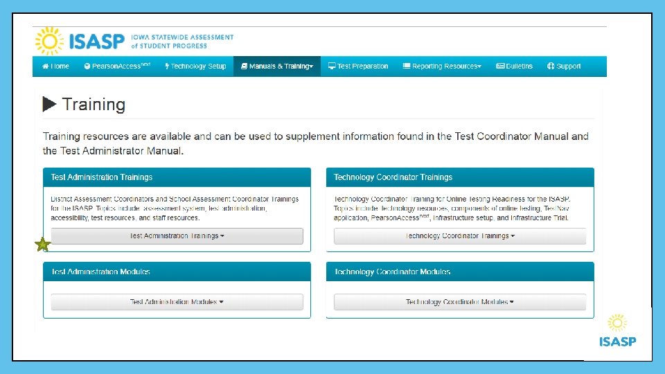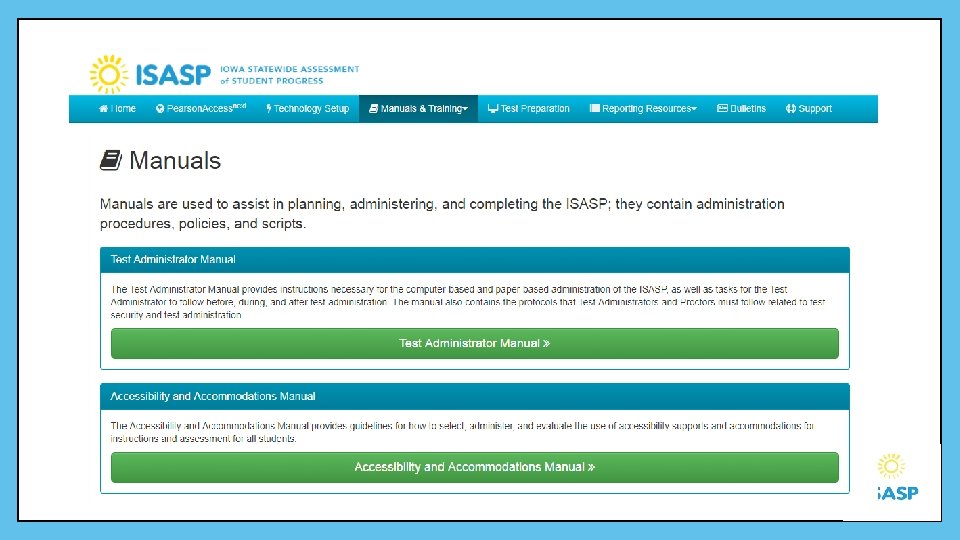 ISASP Portal • Iowa Statewide Assessment of Student Progress (ISASP) portal • http: //iowa. pearsonaccessnext. com/