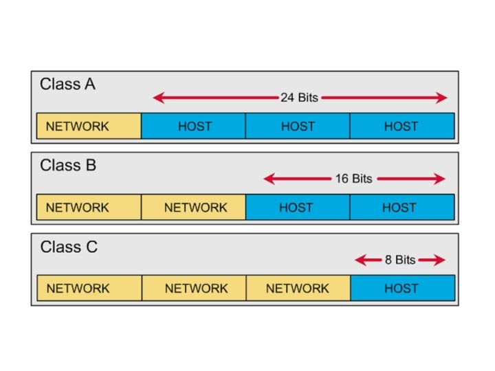Rozdelenie IP adries do tried (classful addressing) • V minulosti odvodzovali sieťové zariadenia svoju sieťovú masku hlavne podľa príslušnosti k jednotlivej triede (A-C). • Neskôr vznikla potreba jemnejšieho delenia IP adries z dôvodu topologického usporiadania sietí a pod. Siete tried A (maska 255. 0. 0. 0) sa rozdeľujú na menšie podsiete s maskami 255. 0. 0 a 255. 0 (všimnite si, že masky oktety buď nulové alebo 255) • Ešte neskôr sa potreba ešte jemnejšieho delenia sietí zosilnila v dôsledku hrozby vyčerpania dostupných IP adries. Vzniká classless adresovanie, t. j. siete sa začínajú deliť tak, že sieťová maska nemá oktety nulové alebo 255 ale rôzne (napr. 255. 248 alebo 255. 252. 0).