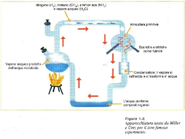 IPOTESI SULL’ORIGINE DELLA VITA • Gli studiosi Haldane e Oparin, negli anni venti, erano giunti alle conclusioni che la vita si sarebbe potuta originare dalla materia non vivente in quanto, in un passato lontanissimo, in condizioni diverse da quelle attuali, da semplici composti inorganici si sarebbero formate spontaneamente le prime molecole organiche, cioè le basi della vita. • Tale ipotesi è stata successivamente confermata nel 1953 da Miller, il quale riproducendo sperimentalmente le condizioni atmosferiche presenti sulla Terra, alle sue origini, ottenne numerose molecole organiche.