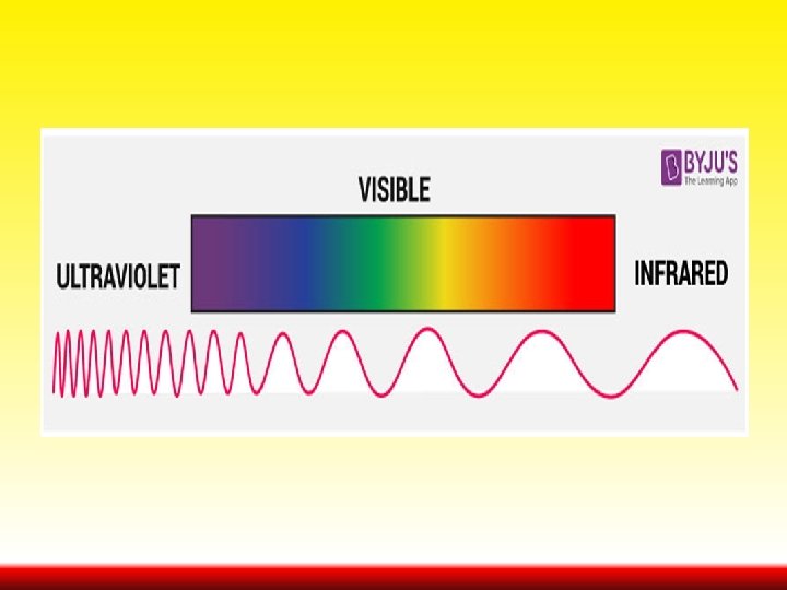 The infrared portion of the electromagnetic spectrum is usually divided into three regions; the near- (0. 75 - 2. 5 μm , mid- (2. 5 - 16 μm ) and far- infrared (25 - 1000 μm), named for their relation to the visible spectrum. The higher-energy near-IR, approximately 14000– 4000 cm− 1 (0. 7– 2. 5 μm wavelength) can excite overtone or harmonic molecular vibrations. The mid-infrared, approximately 4000– 400 cm− 1 (2. 5– 25 μm) may be used to study the fundamental vibrations and associated rotational-vibrational structure. The farinfrared, approximately 400– 10 cm− 1 (25– 1000 μm), lying adjacent to the microwave region, has low energy and may be used for rotational spectroscopy. The names and classifications of these subregions are conventions, and are only loosely based on the relative molecular or electromagnetic properties. IR Spectroscopy detects frequencies of infrared light that are absorbed by a molecule. Molecules tend to absorb these specific frequencies of light since they correspond to the frequency of the vibration of bonds in the molecule.