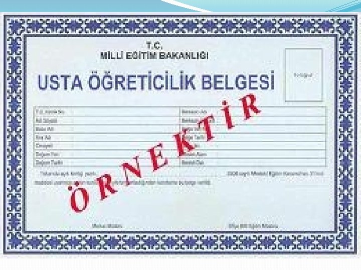 � 3308 sayılı kanuna uygun olarak gerçekleştirilen eğitimleri tamamlayanlara; şartlarına uygun belge verilir. * KALFALIK BELGESİ *USTALIK BELGESİ * USTA ÖĞRETİCİLİK BELGESİ * İŞYERİ AÇMA BELGESİ