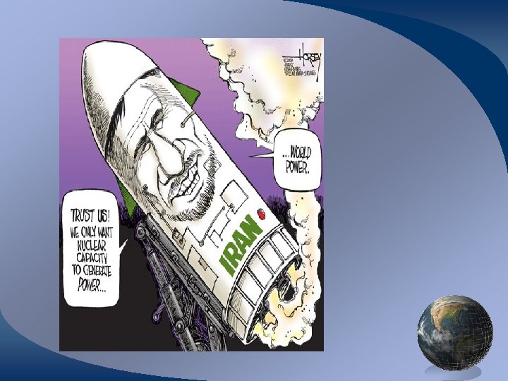 Who gets to be the boss of nukes? • Iran under sanction for not cooperating with UN inspectors. • US does not believe that Iran’s claims of peaceful use only. • Suspicious of Russia’s involvement. • Fears arms race in the region • Fears that Iran will carry out its threats.