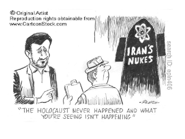 IN HIS OWN WORDS… • Anybody who recognizes Israel will burn in the fire of the Islamic nation's fury. • Nuclear energy is the scientific achievement of the Iranian nation. • It is not just for a few states to sit and veto global approvals. • The establishment of Zionist regime was a move by the world oppressor against the Islamic world. • The UN structure is one-sided, stacked against the world of Islam. • The United States' administrations. . . must recognize that Iran is a big power. Having said that, we consider ourselves to be a human force and a cultural power and hence a friend of other nations. We have never sought to dominate others or to violate the rights of any other country. • Those who insist on having hostilities with us, kill and destroy the option of friendship with us in the future, which is unfortunate because it is clear the future belongs to Iran and that enmities will be fruitless. • If some want to misuse the generosity of our nation, and re-examine what was previously examined, they should know the fire of the anger of the Iranian nation will be extremely burning and devastating.