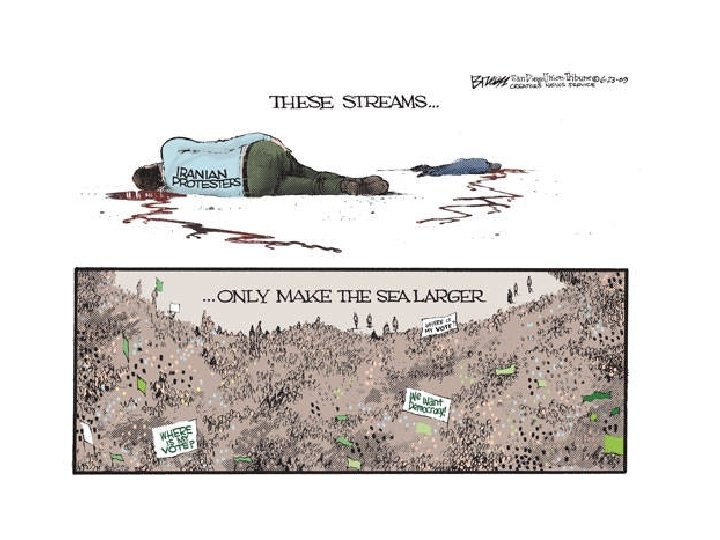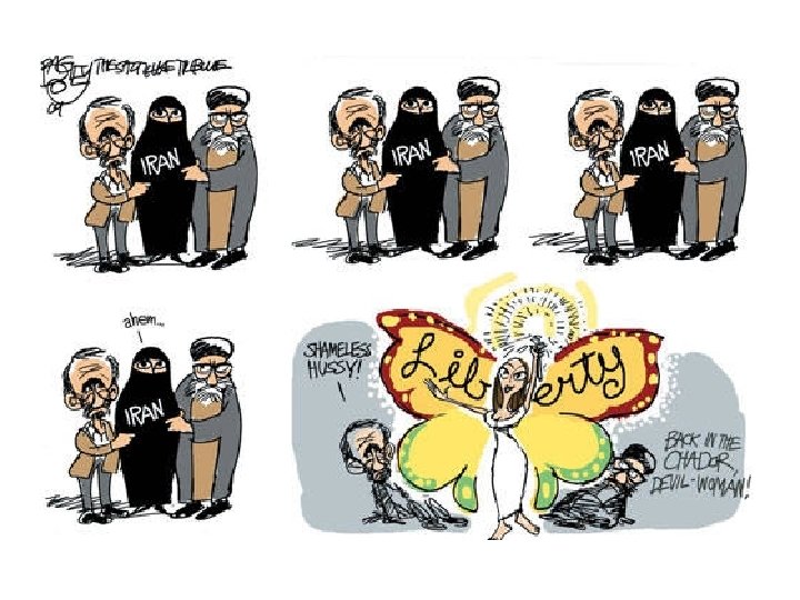 Life After the Revolution • Strict laws came back – modernization is out and Ayatollah in power • Shar’ia Law came into power = strong Islamic laws like: – – – Women must be covered Hair and beards must be long for men No drinking Traditional clothing Children of divorce go to daddy • Elections – free but lots of fraud • Freedoms – no freedom of expression, censorship, detainees