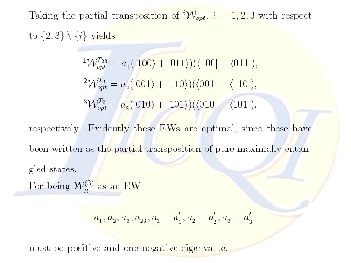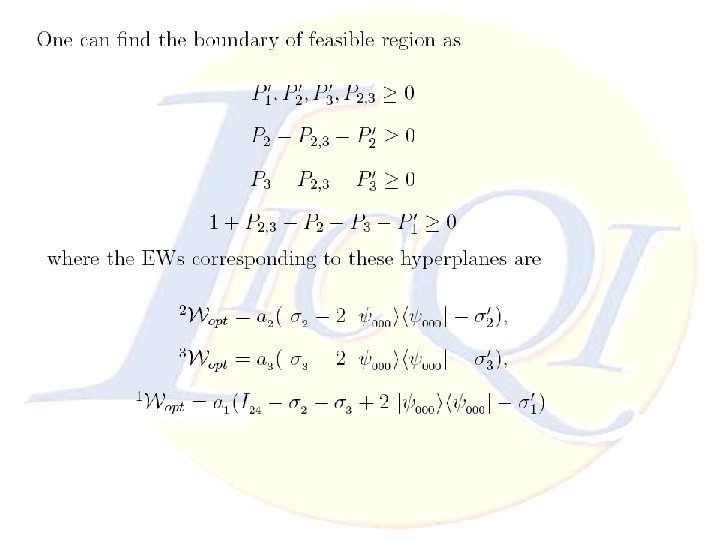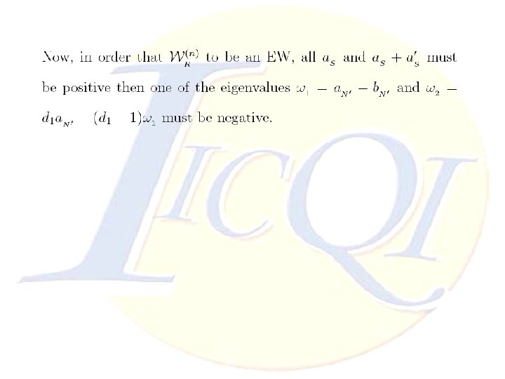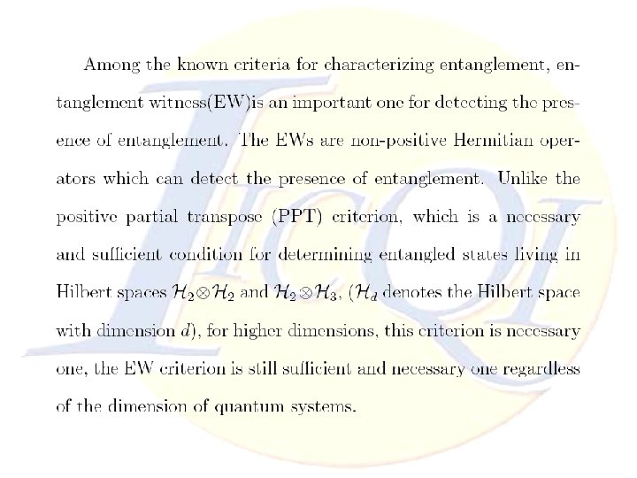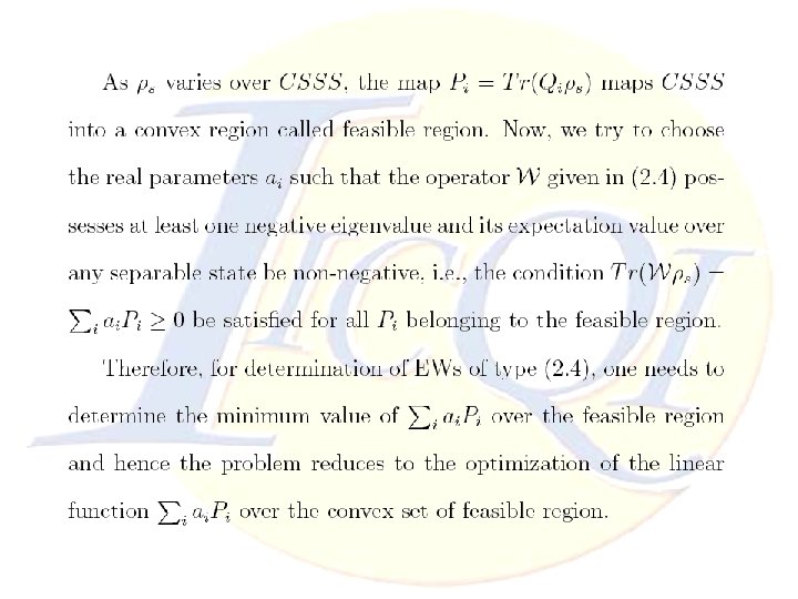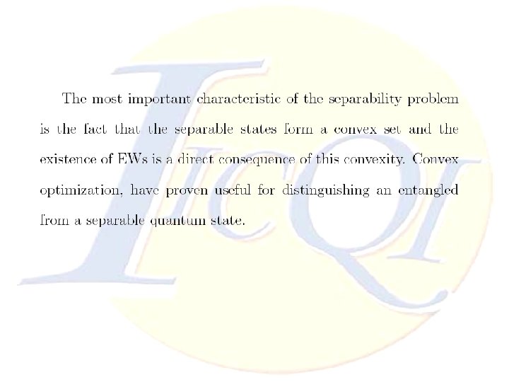 Conclusion Ø The advantage of reducing manipulation of EWs to LP problem is to find optimal (Decomposable or Nondecomposable) EWs and it leads to detect larger areas of entanglement even when we solve our problem with approximated LP ones. Thanks for your attention Ø Studying Decomposable and Non-decomposable regions in multi-partite systems are so difficult which might be simplified by this method. Ø Multi-partite EWs open a new aspects to introduce many positive maps. Nonlinear Convex Optimization