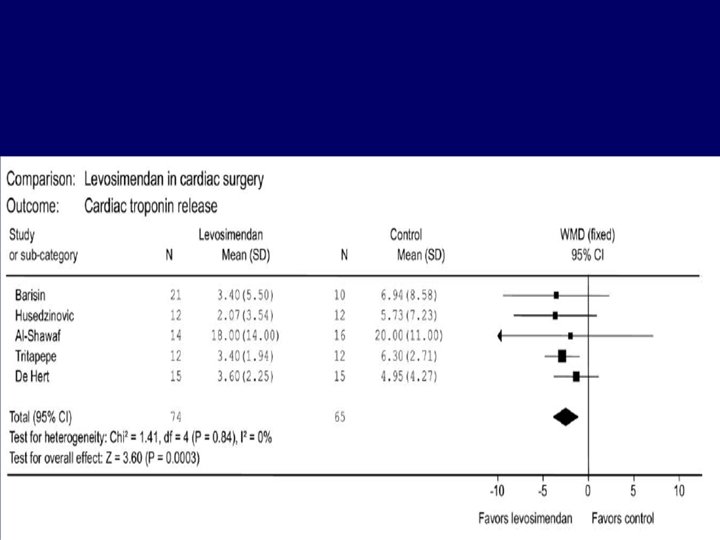 Levosimendan and Mortality in Cardiac Surgery 711/235=4. 7% v 26/205=12. 7% 7 P=0. 007 7 NNT = 12