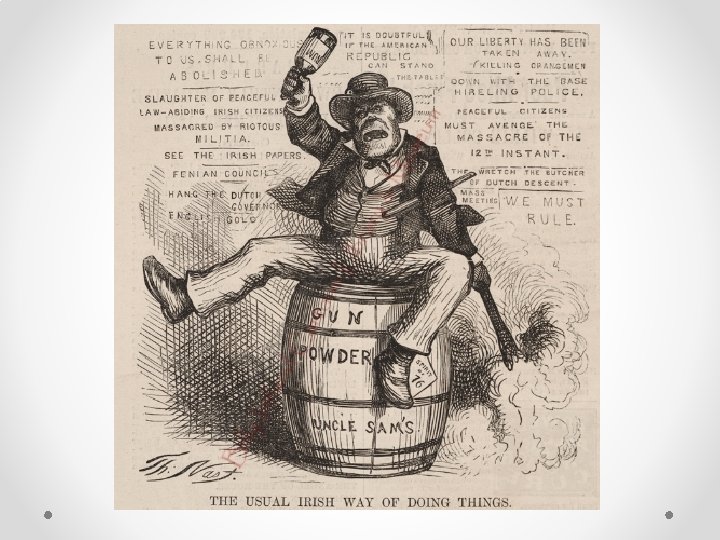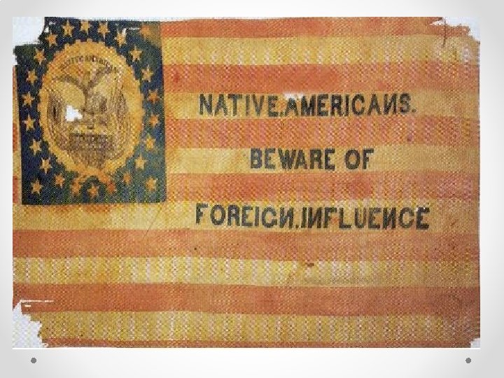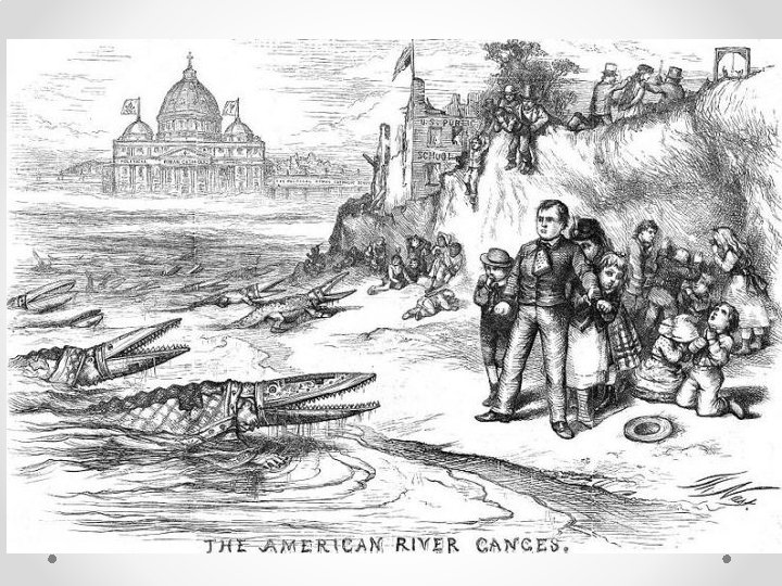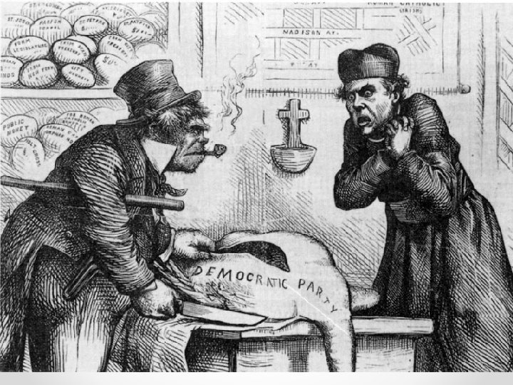 Challenges • Difficult living and working conditions o Irish lived in crowded parts of cities and did the lowest jobs and were banned from any skilled jobs • Anti-Catholic Sentiment o The United States was largely Protestant at this point (2 nd Great Awakening). Irish seen as more loyal to the Pope than they would be to America. • Nativism o Belief created in the mid-1800’s that native born American’s moral and cultural values were under attack from foreign immigrants. Specifically Protestant Americans were being attacked by Catholic immigrants o Political party formed based on this. . . Know-Nothing Party (American Party)