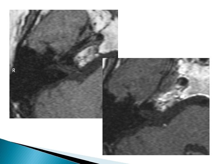 § Prise de contraste physiologique : • Ganglion géniculé • Portion tympanique proximale : distribution des espaces périneuraux qui débutent après le ganglion géniculé vaisseaux périneuraux dépourvus de barrière hématoneurale