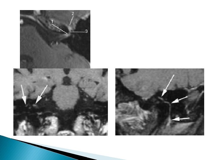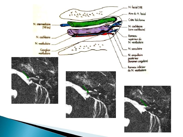 TECHNIQUES � Exploration � Coupes large fines à forte pondération T 2 (CISS 3 D) � Séquence � Injection en contraste spontané de Gadolinium +++