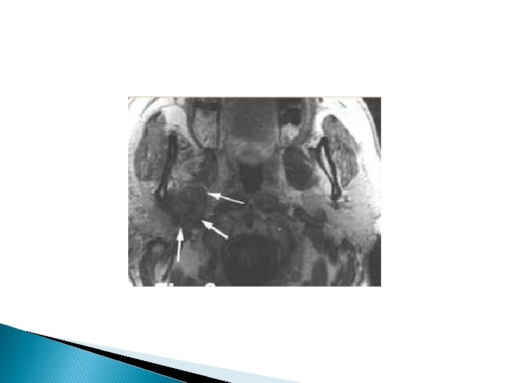 PFP post-traumatique � TDM : ◦ Le trajet de la fracture → le canal facial ◦ Compression nerveuse par une esquille osseuse ◦ Ne visualise pas directement le nerf