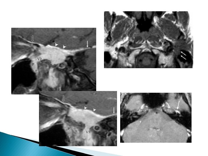 Difficulté de l’imagerie : trajet long (+++) du NF exocrânien + ses branches terminales ◦ Supérieure temporo-faciale ◦ Inférieure cervico-faciale