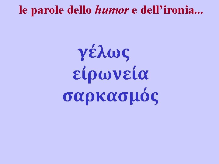 Γέλως βάραθρον: ironia e umorismo nella letteratura greca da Omero ai Cristiani Storia della Lingua Greca Laurea Magistrale in Filologia, Letteratura e Tradizione Classica a. a. 2012/2013 – C. Neri camillo. neri@unibo. it