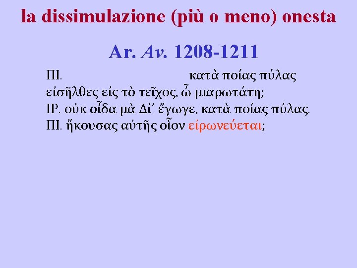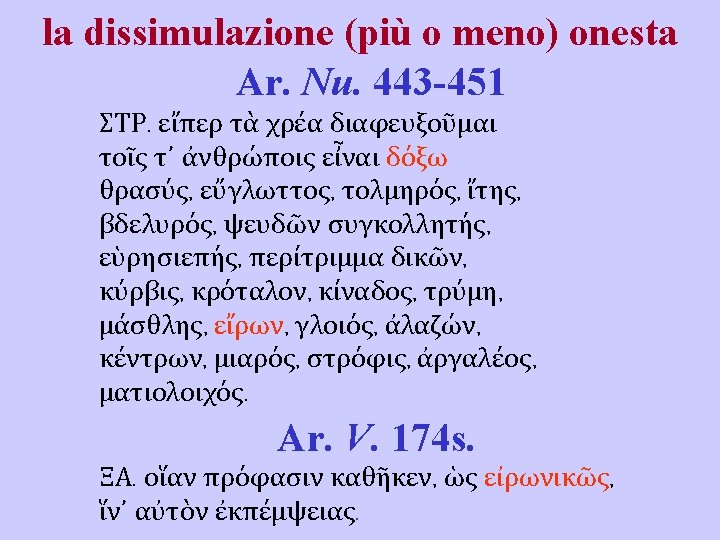 dissimulazione e impostura • l’apparire meno di quel che si è • la menzogna • l’inganno • tra captatio benevolentiae e disarmo • il contrario dell’ ἀλαζονεία • finti tonti e sciattoni