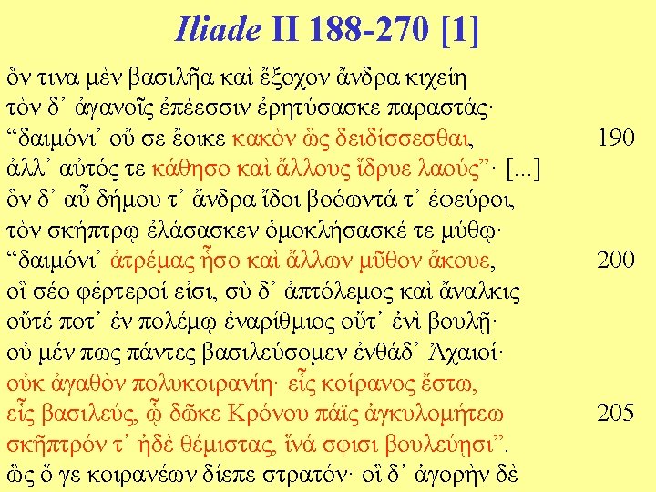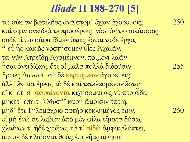 Una lingua letteraria e internazionale L’uso incoerente e ‘versificatorio’ del duale (ὄσσε, ὀφθαλμός). Il pubblico aristocratico e la corporazione internazionale degli aedi. I composti ‘letterarizzanti’ e termini peregrini (γλῶτται). Opera ‘aperta’, formularità, pensiero individuale e libero dei personaggi.