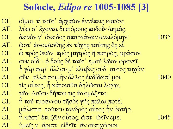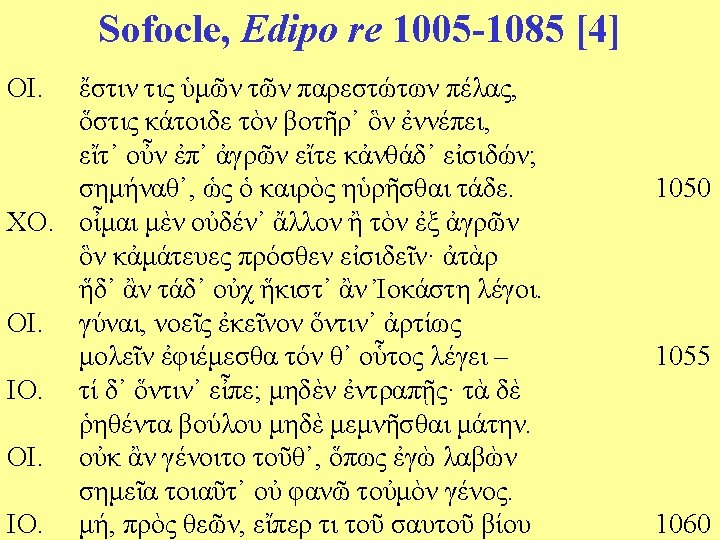 l’ironia tragica • il messo che (non) sa e il sovrano ignorante • l’indagine autolesionistica • la parola e il silenzio • Giocasta e la scelta del ‘non sapere’ • il dolore della conoscenza • la conoscenza di sé e l’identità • la forza della verità e l’ironia della menzogna