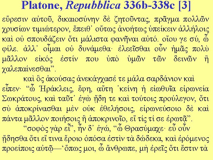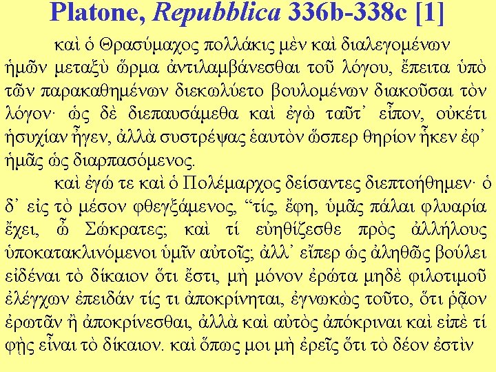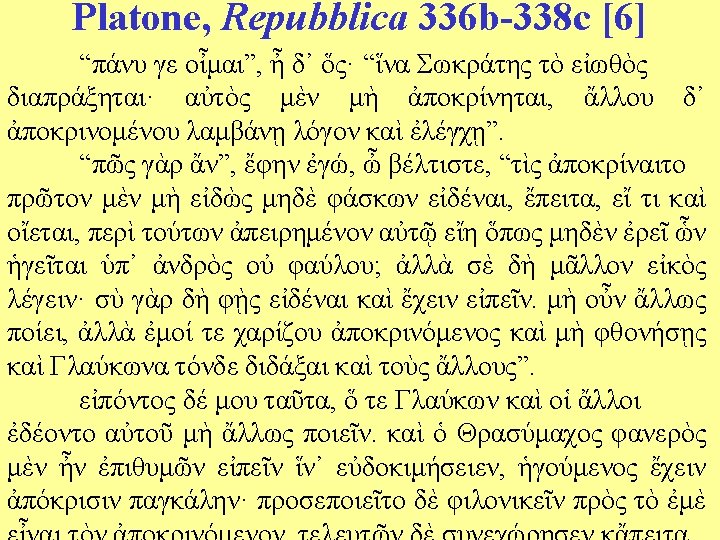l’‘ironia’ socratica • i ‘complimenti’ degli intellettuali e l’immediatezza di Trasimaco • politesse ipocrita e violenza ‘genuina’? • la (caricaturale) retorica della sincerità • confutare e proporre • il ‘politicamente scorretto’ e la sua parodia • il metodo ermeneutico: domande o risposte? • ἀλαζονεία vs. εἰρωνεία