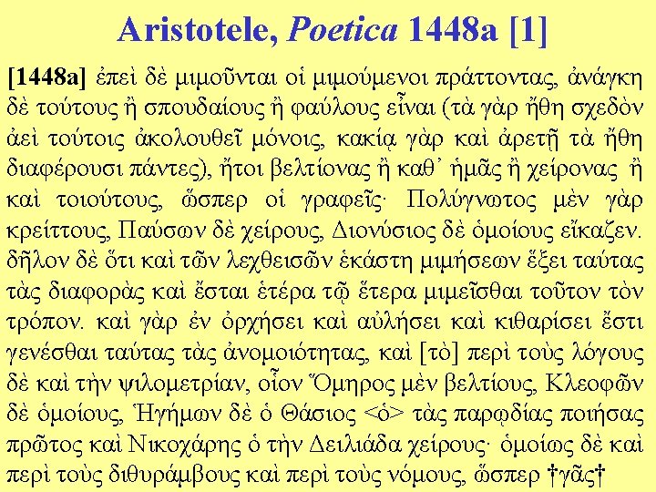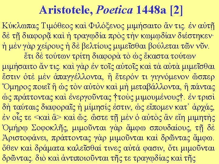 la formula del comico • l’imitazione dei peggiori • il riso e il rapporto Maggiore/minore • i modi della mimesi • commedia e democrazia • il nome della commedia • la rappresentazione delle azioni