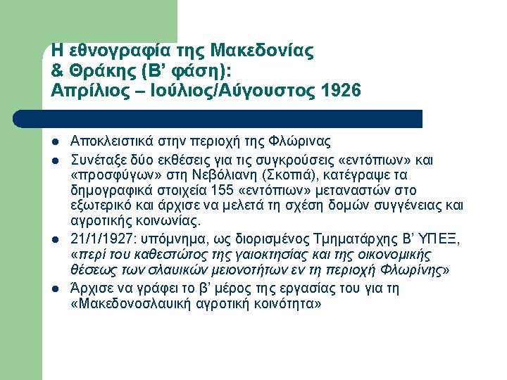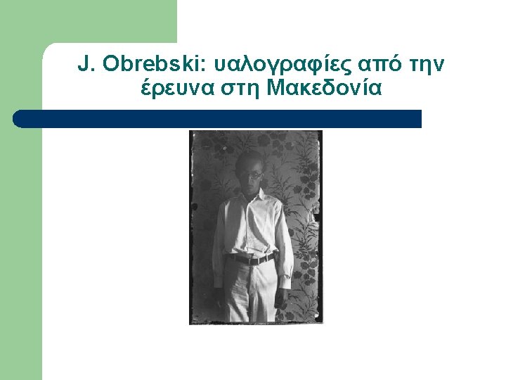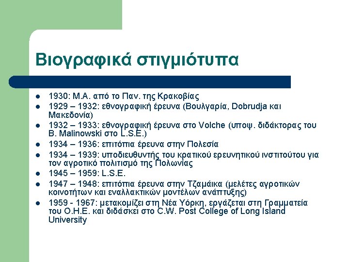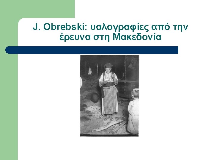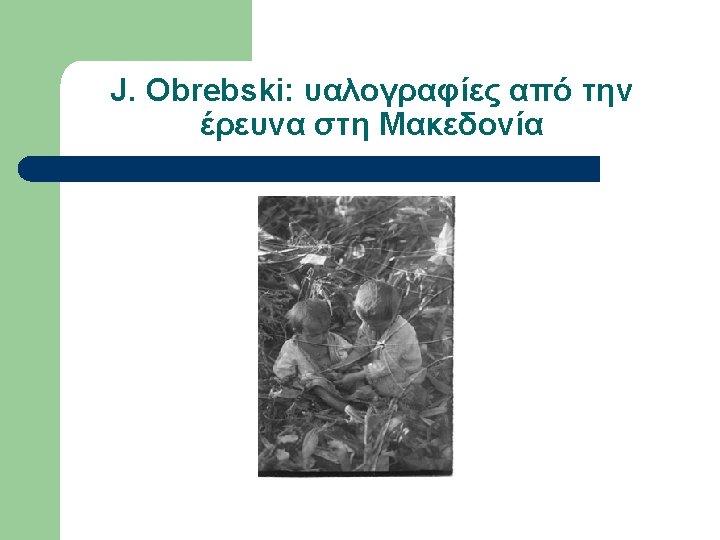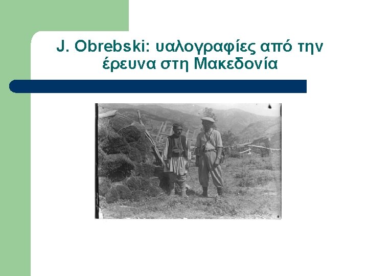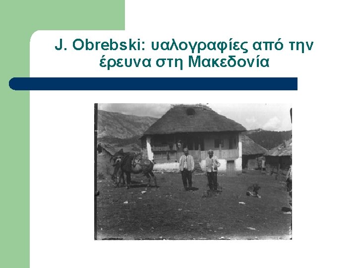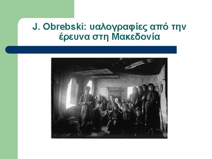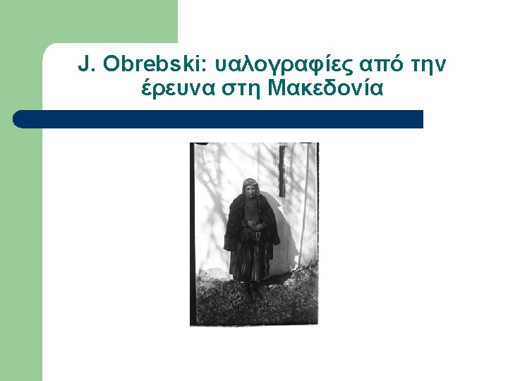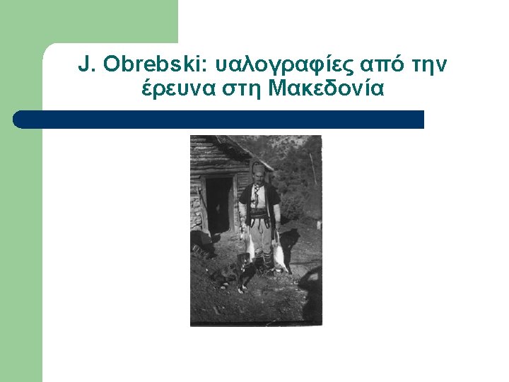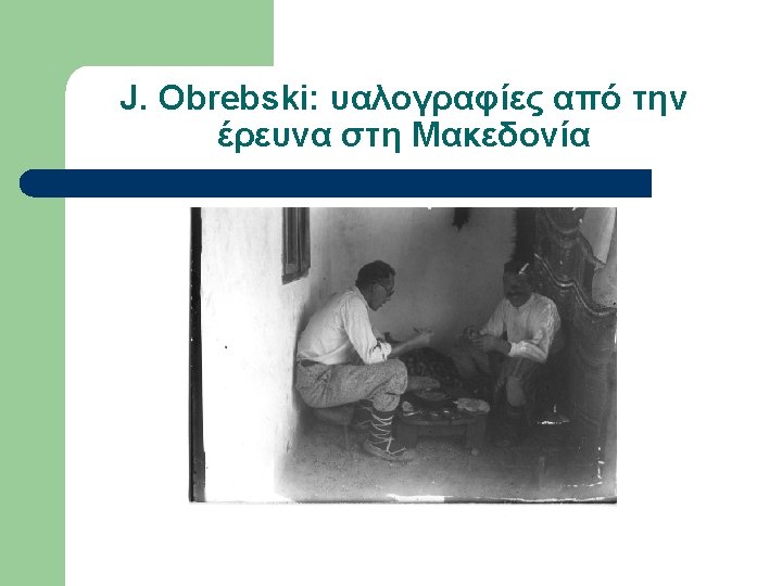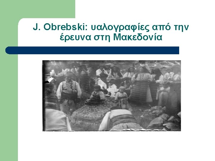 Εργογραφία Obrebski (επιλογή) l l l l 1933 LSE Ph. D Thesis Family organization among Slavs as reflected in the custom of couvade (αρρενο-γονία) 1974 Yesterday’s people: peasants in Polesie: an exhibition of photographs of rural eastern Poland, Amherst, Massachusetts. 1976 The changing peasantry of Eastern Europe, edited by Barbara and Joel 1977 Ritual and social structure in a Macedonian village, edited by Barbara Ker “Ludwik Krzywicki”, in Obrebski Collection, Special Collections & Archives, W. E. B. Du Bois Library, University of Massachusetts, Amherst “Ritual and Social Structure in a Macedonian village”, Ethno. Anthropo. Zoom 2: 1 -18 Bronislaw Malinowski’s Functional Method (αδημοσίευτο)