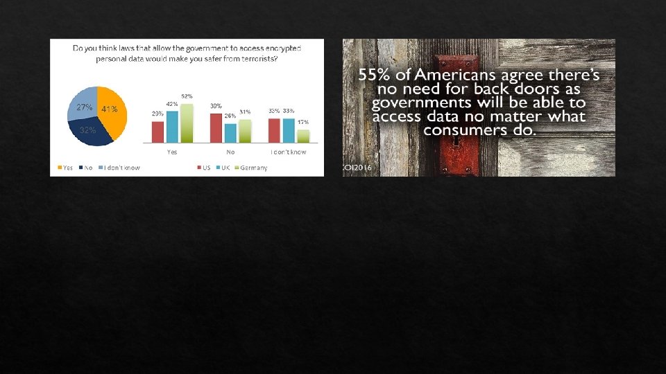 Conclusion Encryption can be a double-edged sword regarding positive and negative impacts. It could be said that privacy can outweigh a lot of the negatives. What can we do? Support companies that favor encryption Help companies that deny government surveillance or access to their products Ensuring laws that help maintain privacy