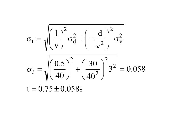 Example A pitcher throws a baseball a distance of 30± 0. 5 m at 40± 3 m/s (~90 mph). From this data, calculate the time of flight of the baseball.