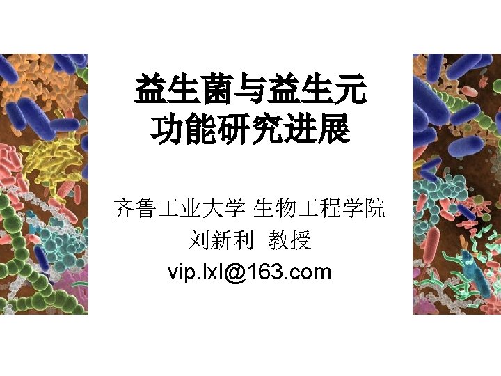 Three types of intestinal bacterium > Bifidobacterium > Lactobacillus etc. > Streptococcus > Bacteroides etc. 双歧杆菌,乳酸杆菌等 �球菌,�杆菌等 菌等 Beneficial bacterium Opportunistic bacterium Harmful bacterium 有益菌 机会性致病菌 有害�菌 ØBeneficial for host animal. Ø�宿主有益. >Enterobacteriac (E. Coli,Salmonella etc. ) > clostridium etc. �杆菌(大�杆菌,沙�氏菌)梭 ØNormally not harmful. Ø一般情况下无害 ØHarmful for host animal. ØCause diarrhea and disease. Ø�宿主有害 Ø引起腹泻和疾病 Predominance of Beneficial bacterium keeps good condition inside intestine 有益菌保持�道健康起主�作用。