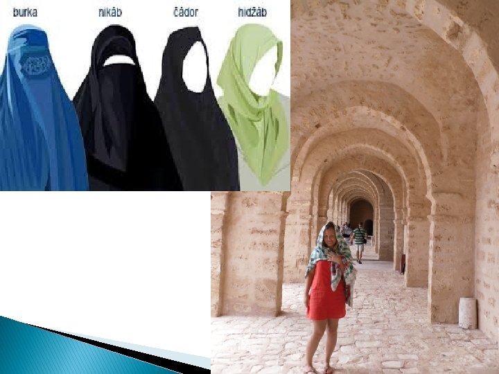 Ženy a ich odev � tradícia závoj � závoj = počestnosť, dôstojnosť, čistota a neporušenosť � závoj ochraňuje jej dušu od rôznych slabostí, jej myseľ od domýšľavosti a jej osobnosť od demoralizácie