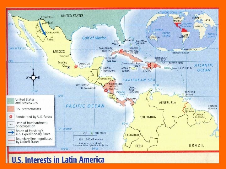 Latin America cont. • Taft’s Dollar Diplomacy - economic - promise to protect the investments of American businesses in L. America - increased U. S. control & influence in L. America • Wilson’s Moral (Missionary) Diplomacy - moral - used to intervene in MX. - moral obligation to promote democracy - supported economic interest of U. S. businesses in western hemisphere