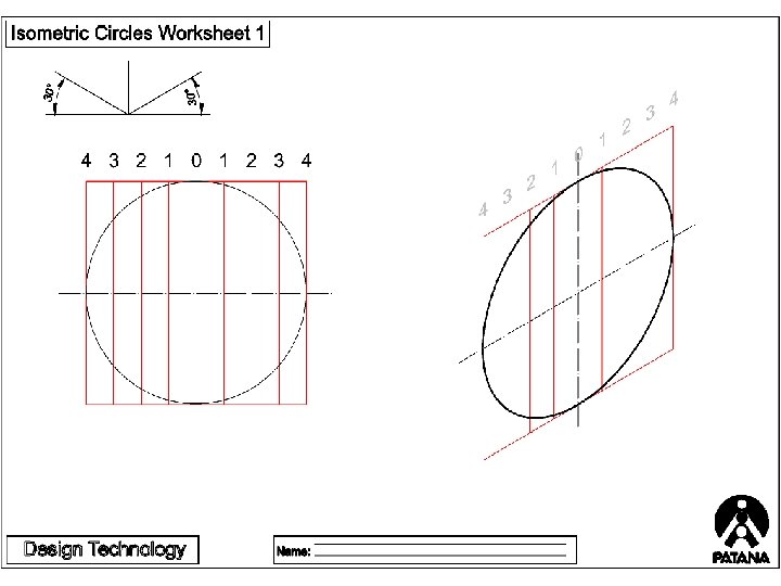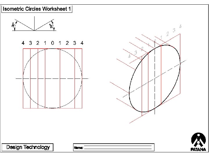 ISOMETRIC CIRCLES AND CYLINDERS 5. Continue around the isometric circle 'plotting' transferring distances from the original grid to the isometric grid - until the circle is complete. Your work sheet should look like this: -