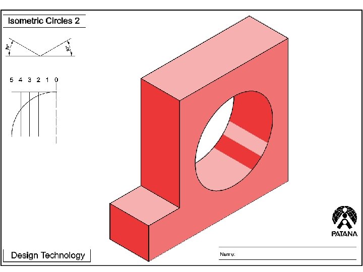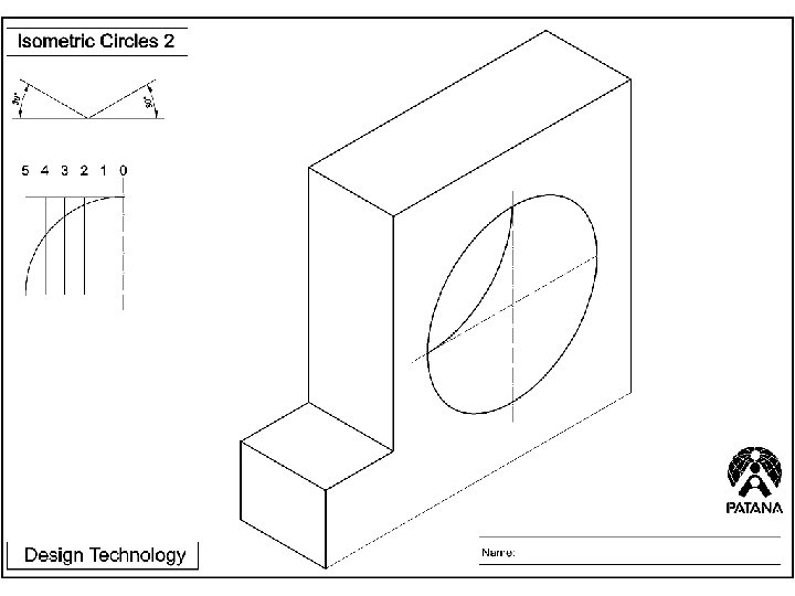 ISOMETRIC CIRCLES AND CYLINDERS This view 160 Draw a block in isometric to theses given dimensions with a 100 mm hole through it. Side view Front view Your work sheet should look like this: -