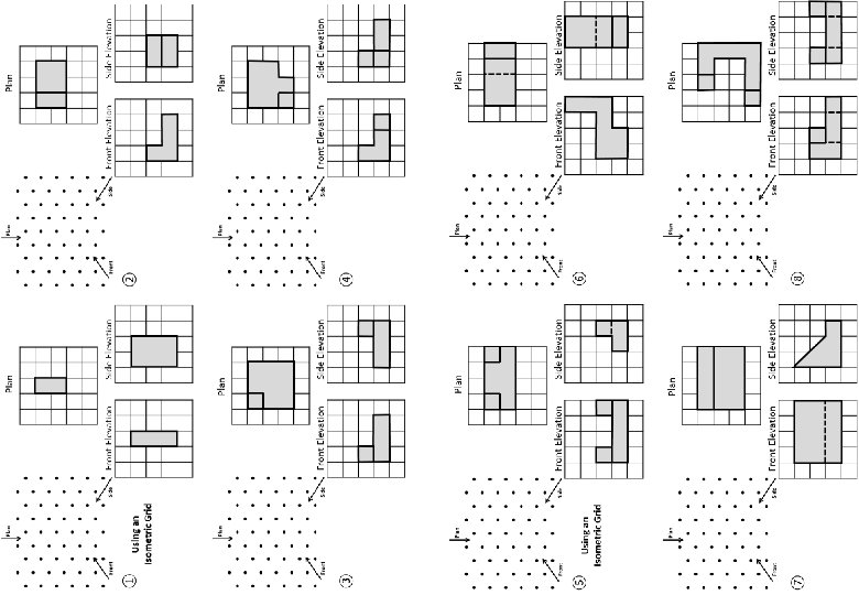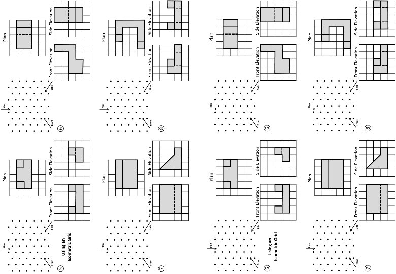 Plan Front Elevation ⑤ Plan Side Elevation Front Elevation ⑥ Using an Isometric Grid Plan Front Elevation ⑦ Side Elevation Plan Side Elevation Front Elevation ⑧ Side Elevation