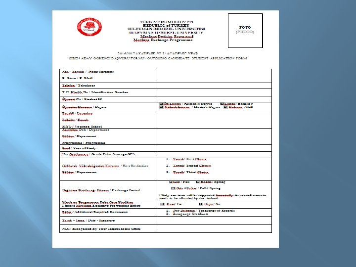 STUDENT DOCUMENTS Candidate Students q q q Candidate Application Form Transcript Certificate of Language After The Confirmation q q q Application Form Learning Agreement Letter of Acceptance Arrival Form Student Declaration Information Form Before Leaving SDU q q q Student Final Report Student Declaration of Attendance Activity Report (for graduate students) Documents are avilable here : http: //mevlana. sdu. edu. tr/en/dokumanlar/student