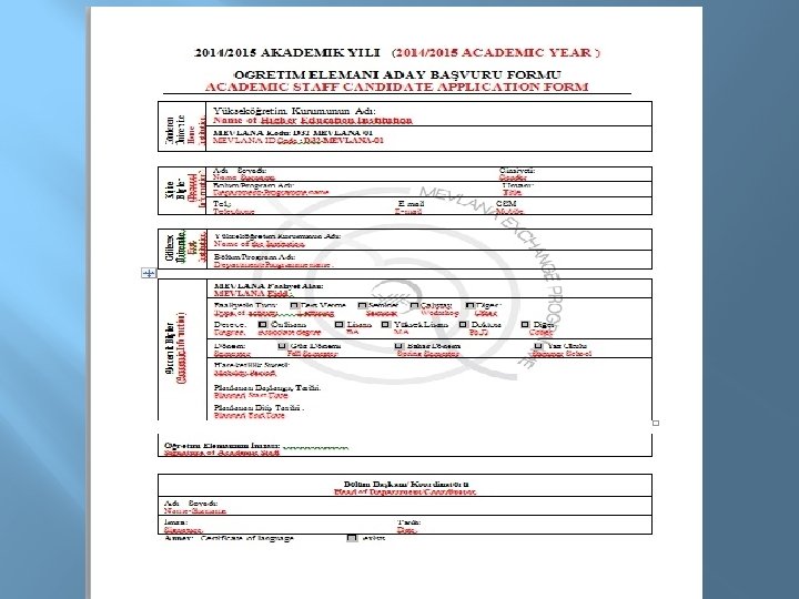 EXCHANGE OF ACADEMIC STAFF q Academic staff (professor, associate professor, assistant professor, lecturer) can participate to Mevlana Exchange Programme. q Research assistants could only participate to Mevlana Exchange Programme as a student not as an academic staff. q Academic staff should lecture at least 6 hours per a week. q Academic staff can participate Mevlana programme min. 14 days and max. 3 months.