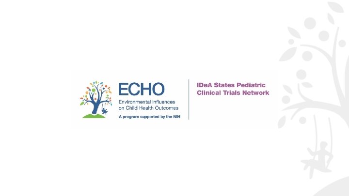 ECHO (Environmental influences on Childhood Health Outcomes) - Mission & Vision • “To enhance the health of children for generations to come (through)…” –Becoming the pre-eminent child health research program –Observational and intervention research to inform highimpact programs, policies, and practices –Institute best practices for 21 st century team science
