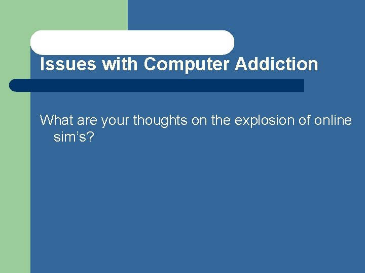 Issues with Computer Addiction What are your thoughts on the explosion of online sim’s?
