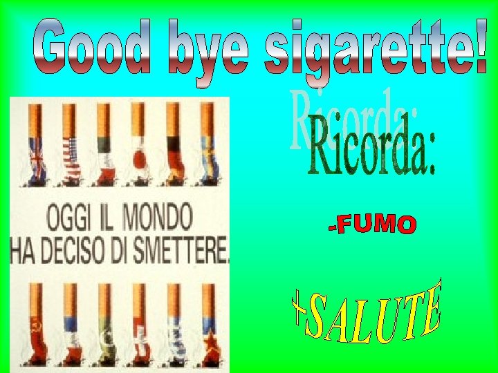 Io fumavo 50 sigarette al giorno e non mi sentivo molto in forma!!!! Ho seguito i consigli della quinta B: ho smesso di fumare! Ed ora. .