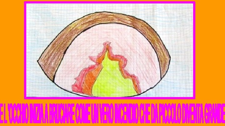 Il ragazzo vede che il lupo ha un solo occhio, allora mette la mano sopra il suo occhio e crea un gesto di amicizia, come se si mettesse alla pari con lui.
