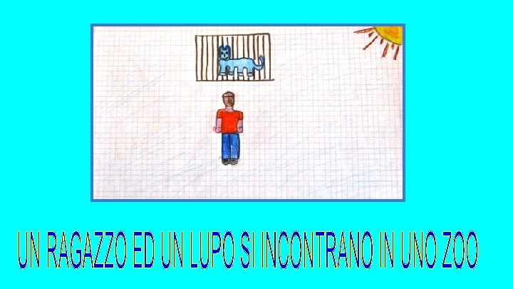 Il ragazzo è immobile davanti alla gabbia del lupo
